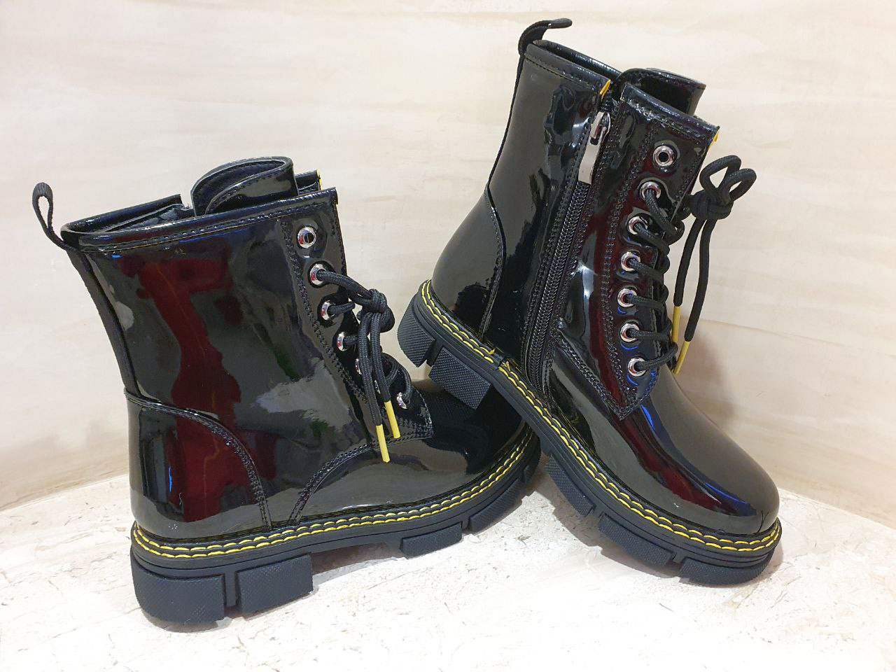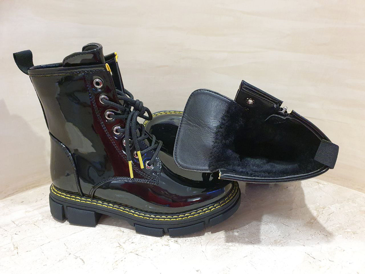Верх зроблений з екошкіри, покритого лаком.