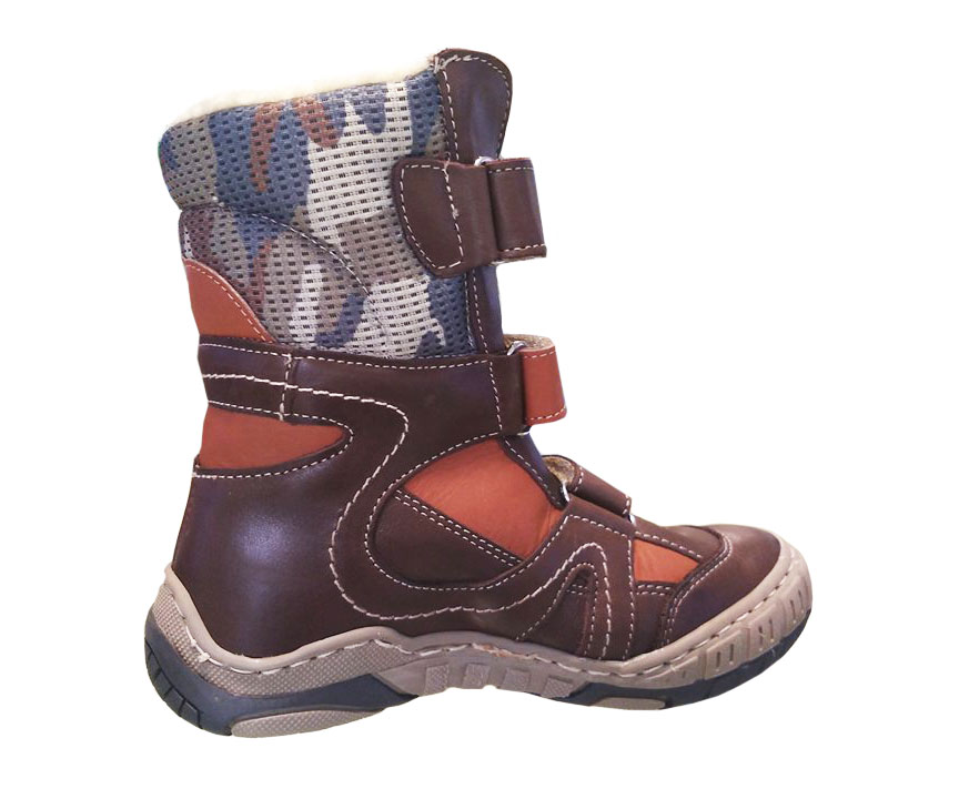 Отличный вариант на зиму для мальчика. Материал: натуральная кожа и текстиль. Внутри - овчинка. Моделька на липучках для удобного и быстрого обувания. Практичный цвет, гибкая подошва, легкие и теплые.